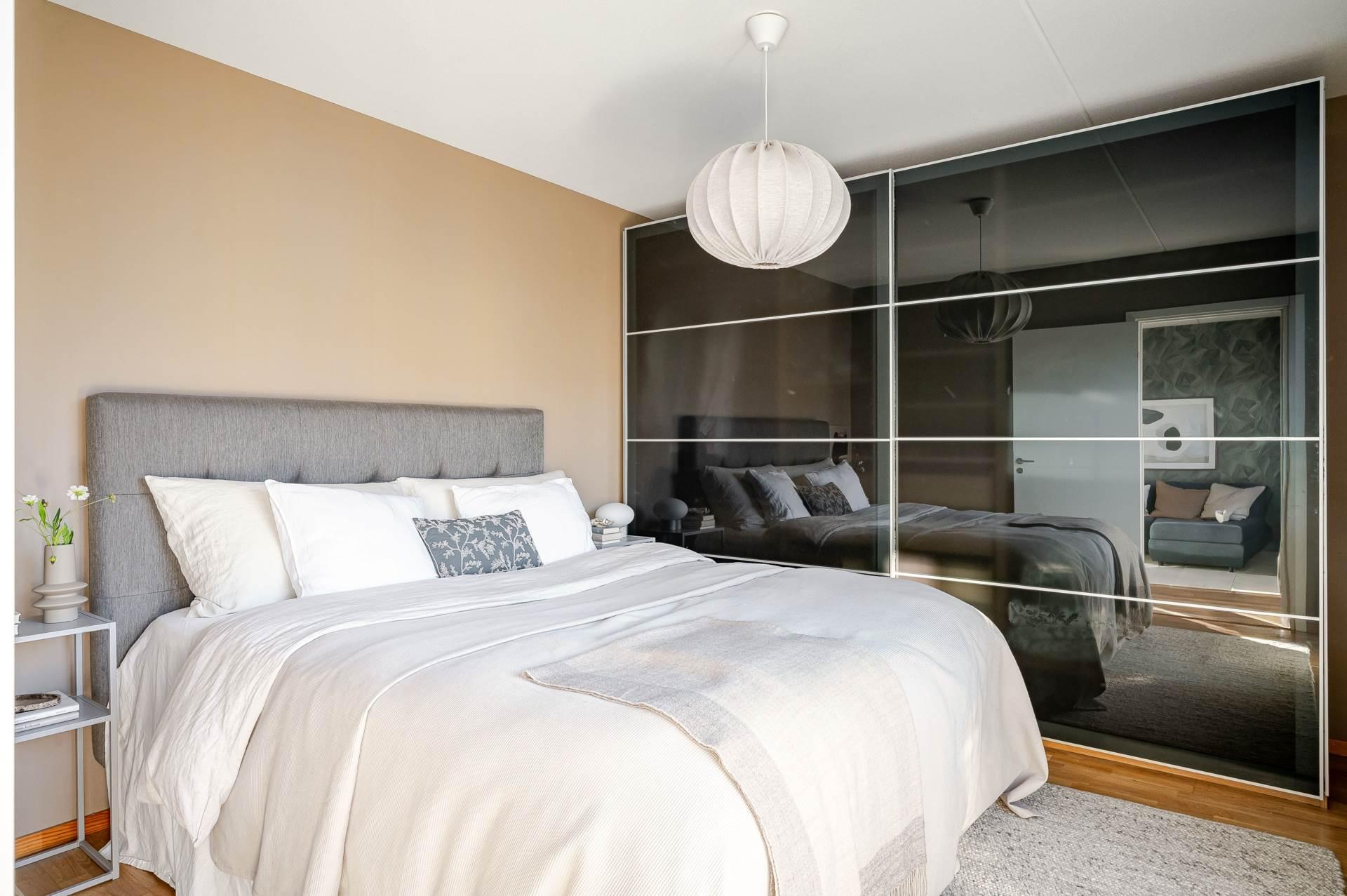 • SOVRUM 1Master bedroom med plats för dubbelsäng, nattduksbord och övrigt önskat möblemang. Förvaring i