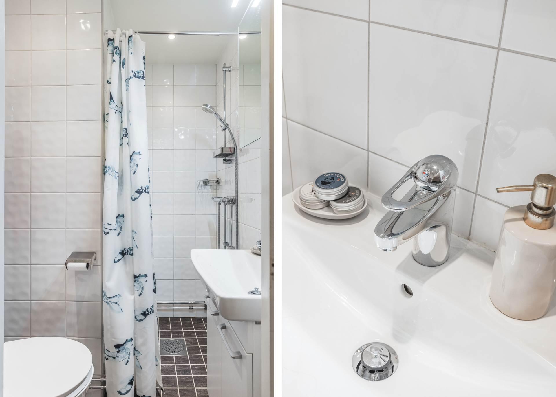 Det stambytta badrummet ger ett tryggt och tidlöst intryck och erbjuder hög komfort för många år framöver. Utöver detta finns en rymlig klädkammare som gör att du får riktigt bra förvaringsmöjligheter trots lägenhetens yteffektiva format.