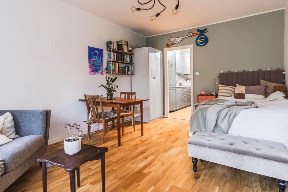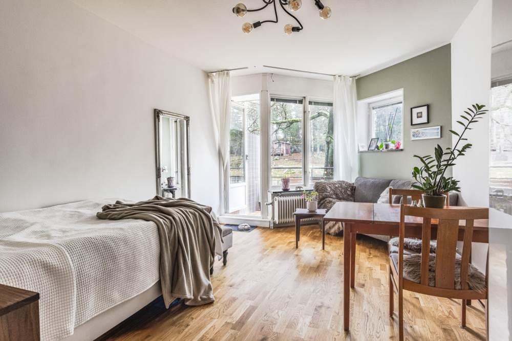 Denna ljusa och välplanerade enrummare erbjuder allt man kan önska sig – från en solig balkong i ett rofyllt gårdsläge till renoverade ytor, smart förvaring och närhet till både natur och stadspuls.