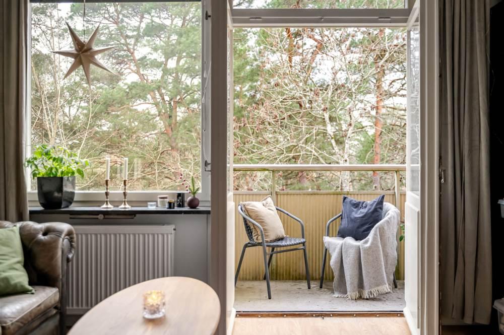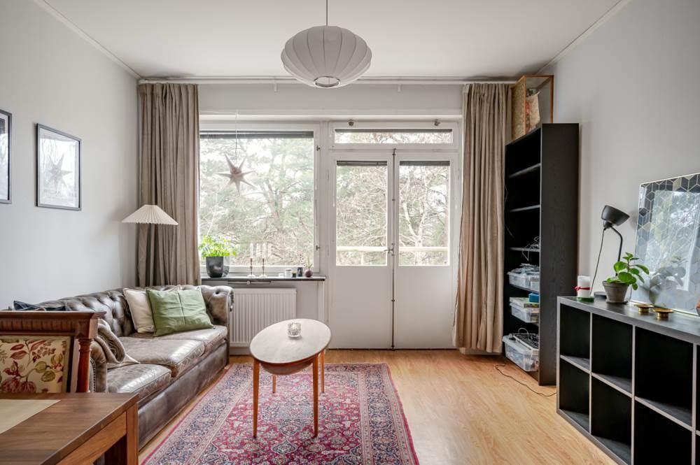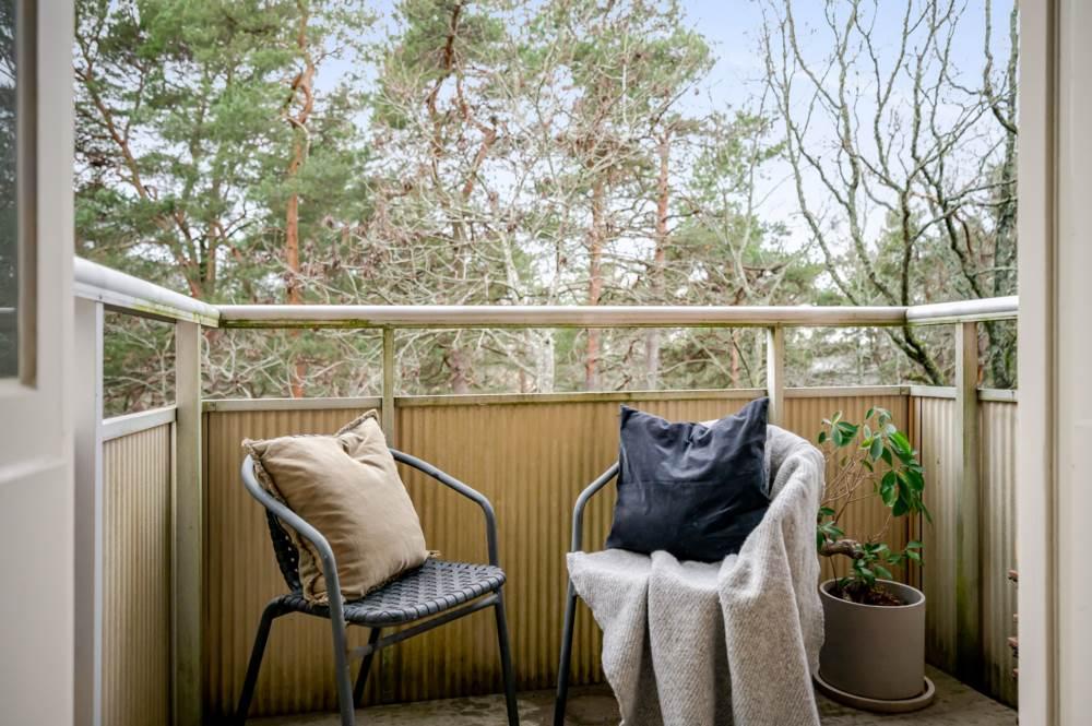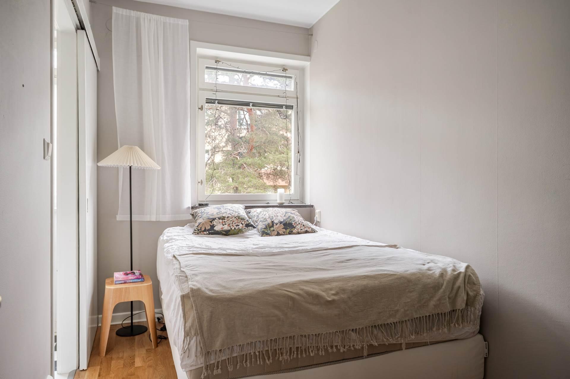 Det ljusa vardagsrummet blir snabbt hemmets naturliga samlingspunkt, med utgång till en stor balkong där du kan njuta av lugnet och grönskan utanför. Sovrummet är väl tilltaget och nås via två ingångar, vilket ger flexibla möbleringsmöjligheter och en praktisk rumsdisposition.