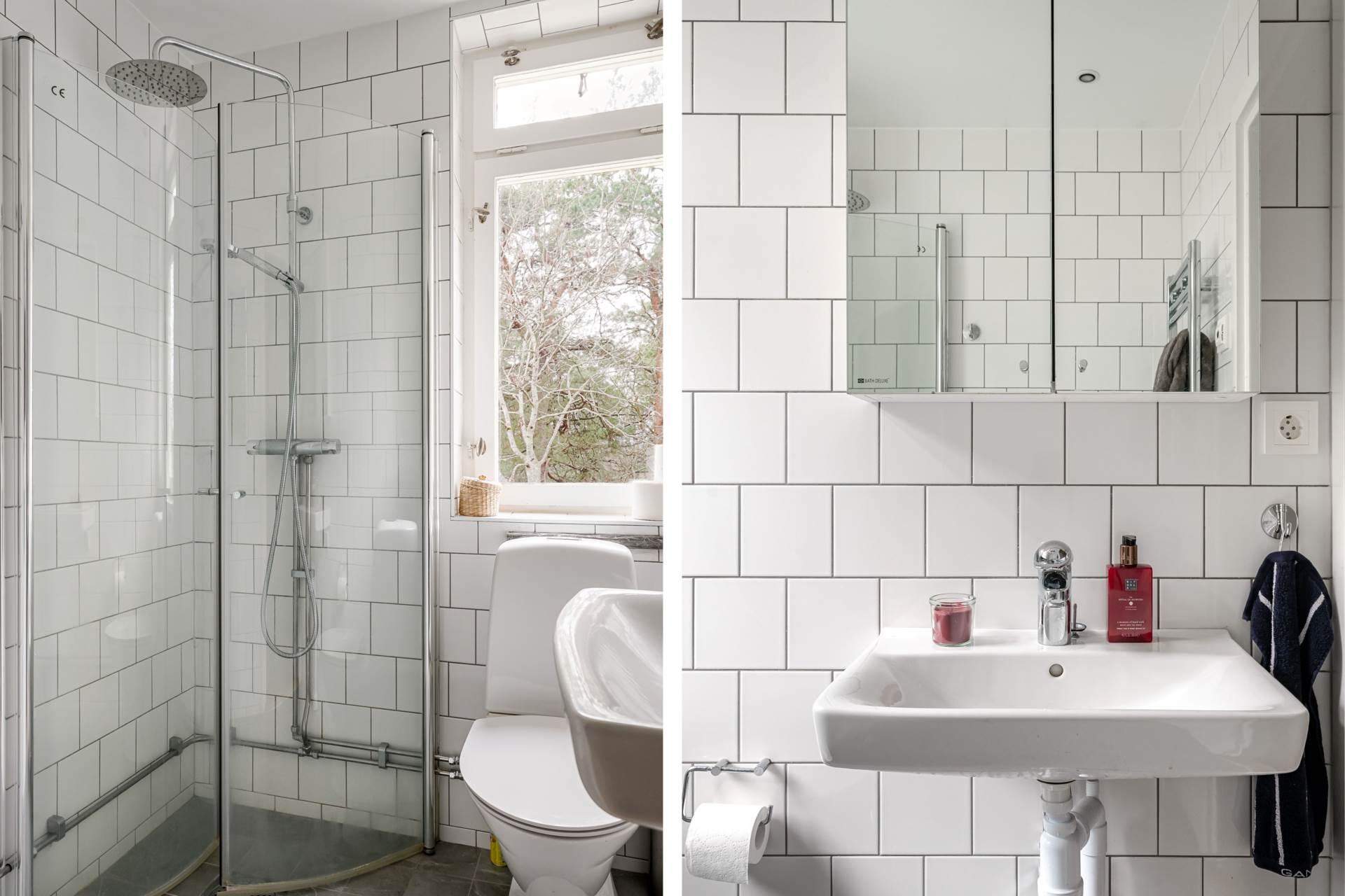 Badrummet är helkaklat, nyligen renoverat och förberett för tvättmaskin. Här finns även ett fönster med utsikt mot ett rogivande skogsparti vilket skapar en härlig och ljus känsla.