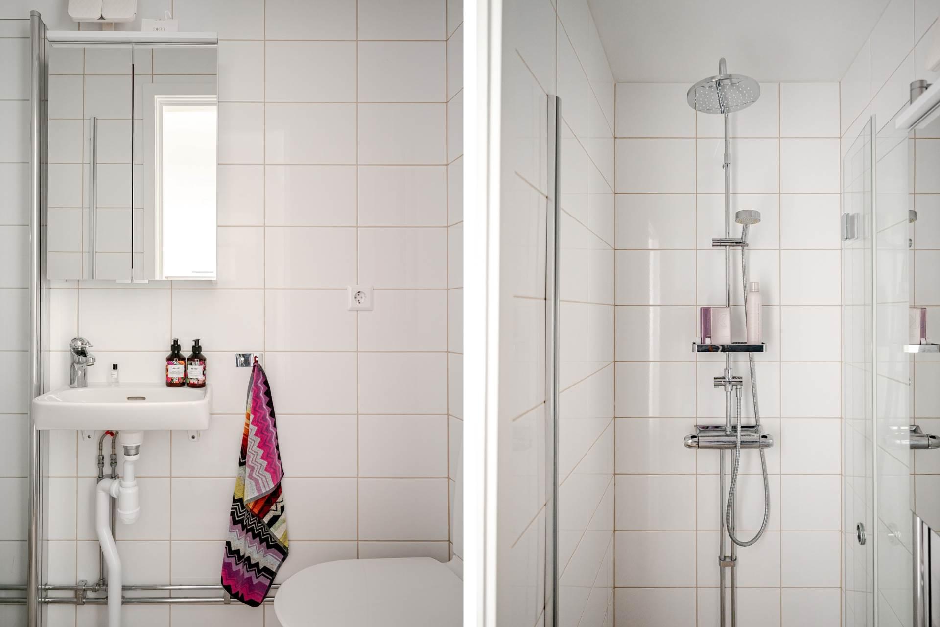 Det helkaklade badrummet är stambytt och fräscht renoverat, vilket ger en trygg och modern standard. Lägenheten är genomgående i mycket gott skick med stilrena materialval och är helt inflyttningsklar – det är bara att flytta in och börja trivas från första stund.