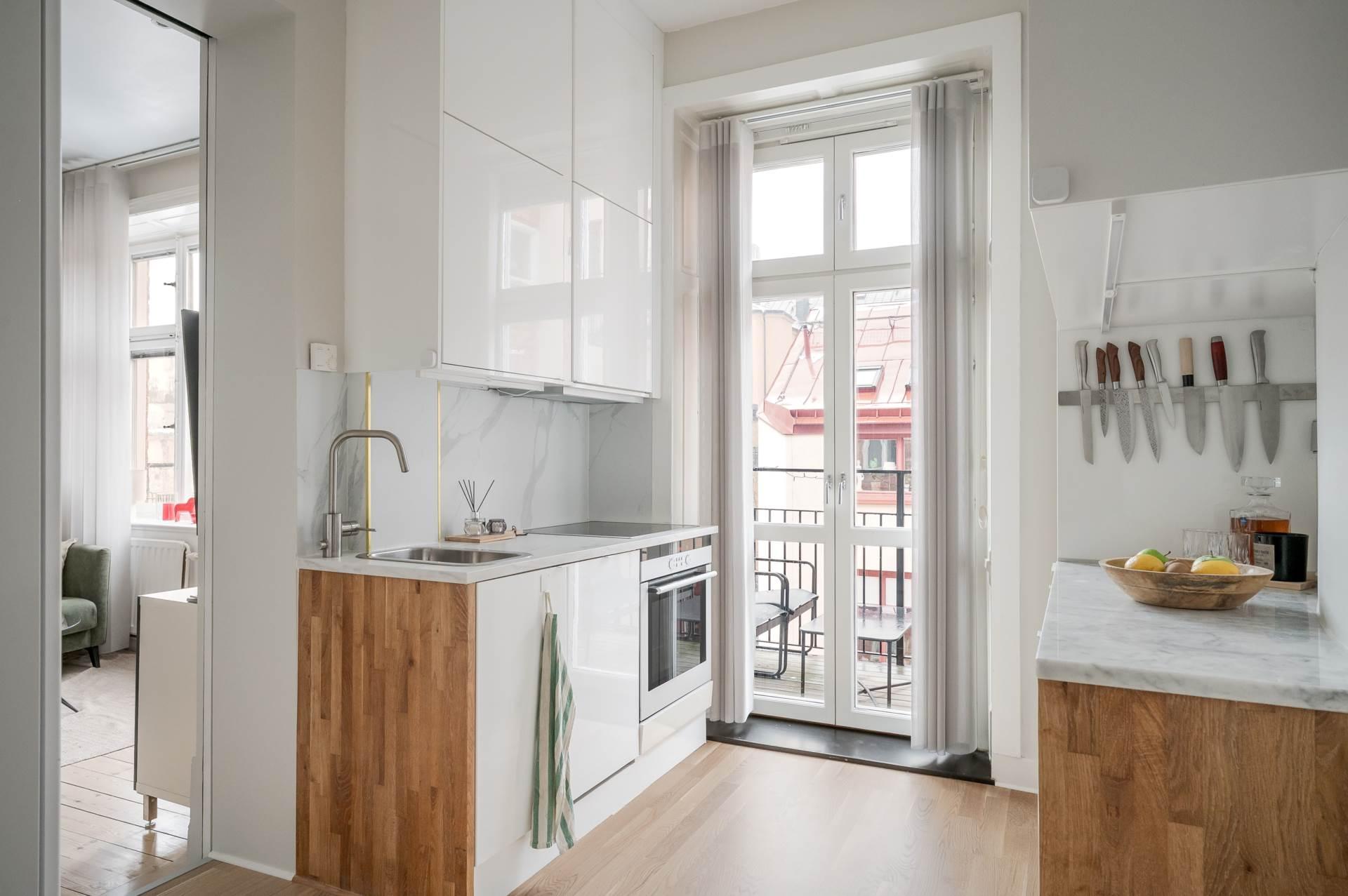 Redan i den trevliga entrén möts du av en inbjudande känsla och praktisk plats för avhängning – perfekt för att hålla ordning och skapa ett välkomnande första intryck. Det ljusa, fullutrustade köket erbjuder allt du behöver för både vardag och fest. Här finns diskmaskin för extra bekvämlighet och en uppskattad utgång till den härliga balkongen – en naturlig förlängning av bostaden där du kan njuta av morgonkaffet eller långa sommarkvällar. Vardagsrummet är bostadens hjärta och badar i ljus tack vare två stora fönster. Här skapas en luftig och trivsam miljö med gott om plats för både soffgrupp och umgänge. Den välplanerade sovdelen ger en avskild och rofylld plats för vila, samtidigt som den erbjuder generös förvaring som gör det enkelt att hålla hemmet organiserat. Badrummet är stilrent helkaklat och utrustat med golvvärme samt vägghängd WC – en kombination av komfort och modern design.