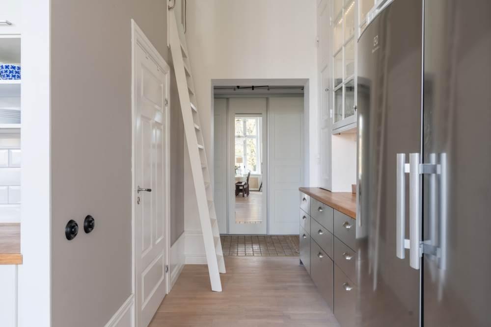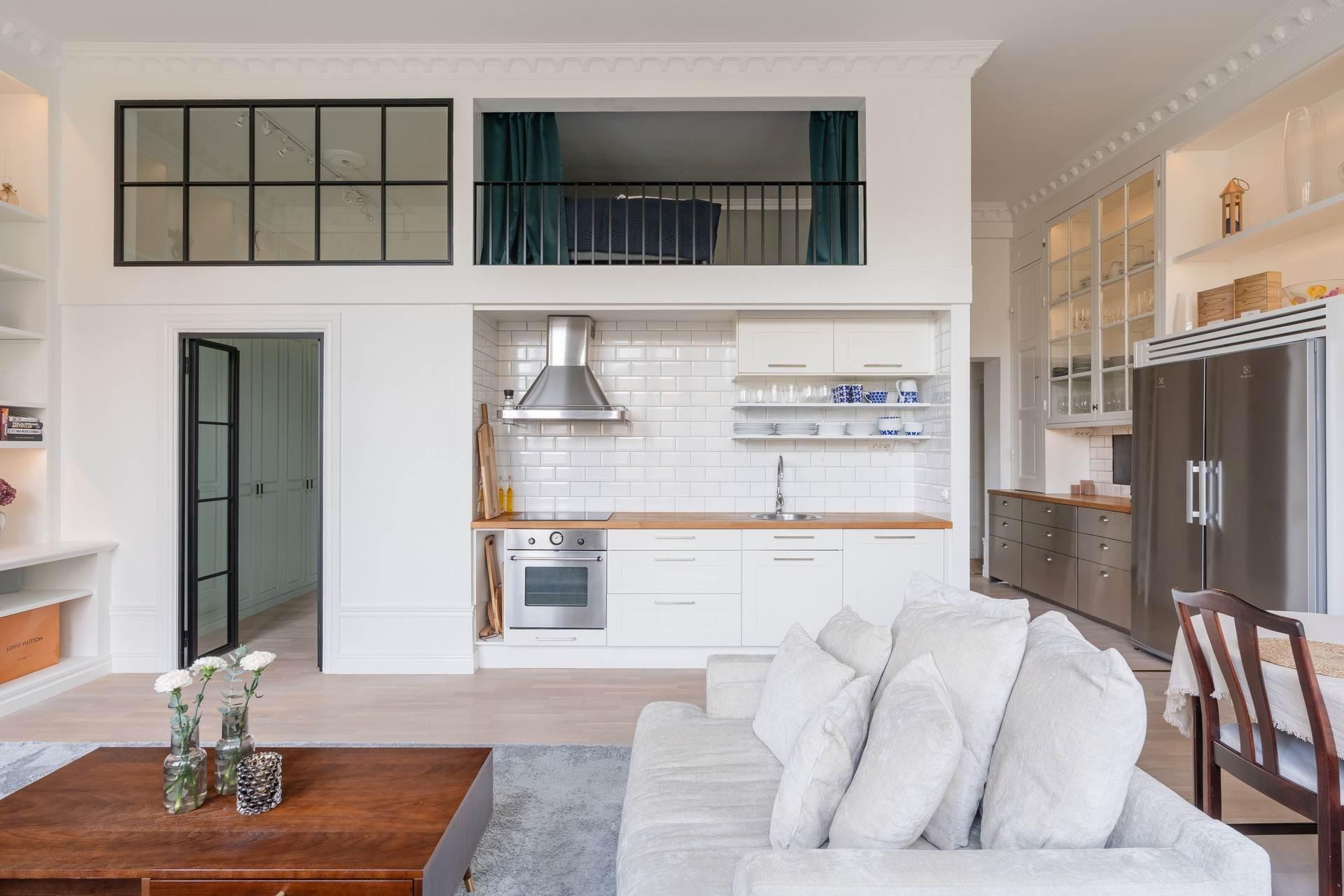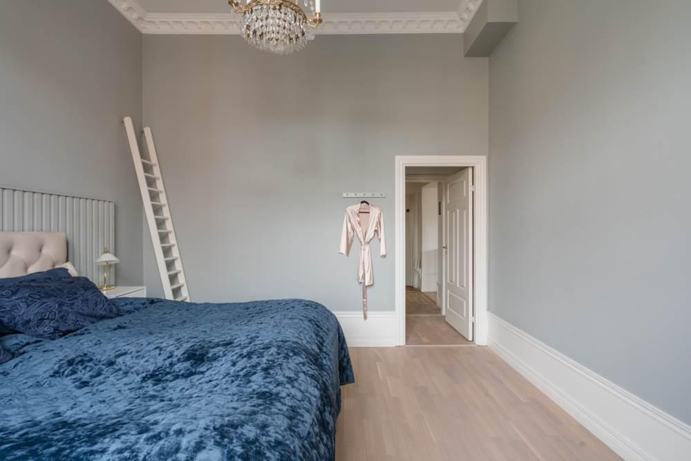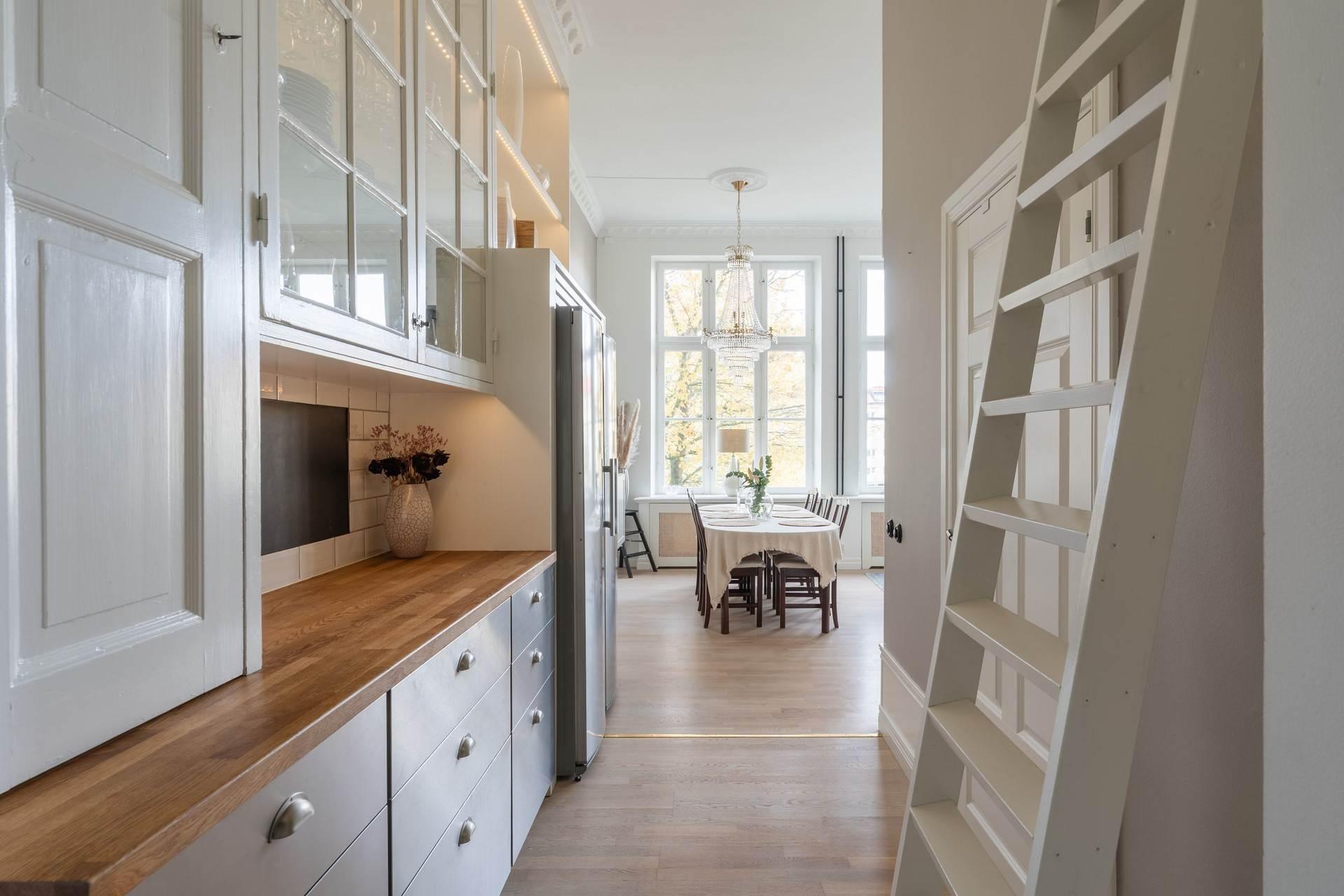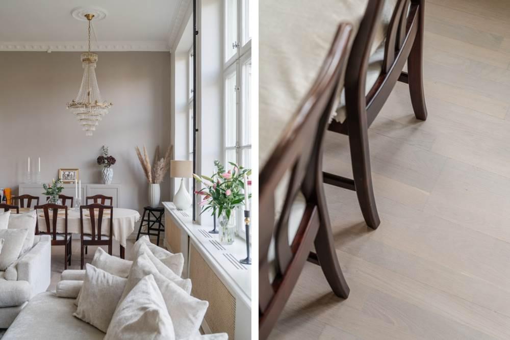 Här bor du med en känsla som är svår att hitta någon annanstans. De enorma spröjsade originalfönstren och den imponerande takhöjden på närmare fyra meter skapar en helt unik rymd och ett ljusflöde som fyller hela hemmet.