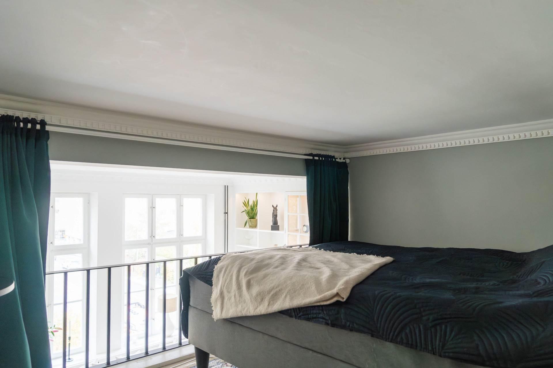 • SovloftCharmig extra yta med plats för säng, kontor eller läshörna. Fin utsikt över vardagsrummet och fönsterpartierna.