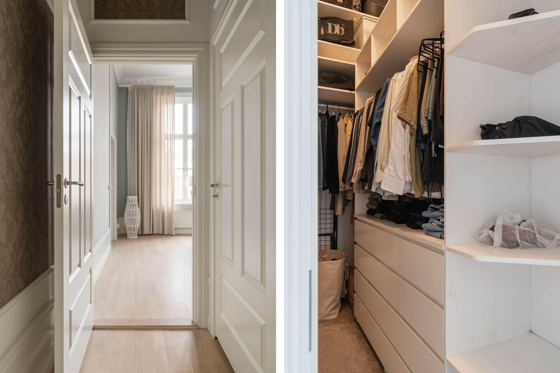 • Walk-in closetPraktisk och generös klädkammare med platsbyggd förvaring och bra ljus.