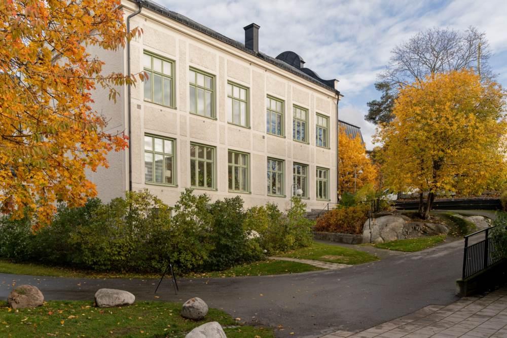 Unik lägenhet i anrika skolhuset. Fyra meter i tak och walk-in closet. Äkta BRF som äger marken.