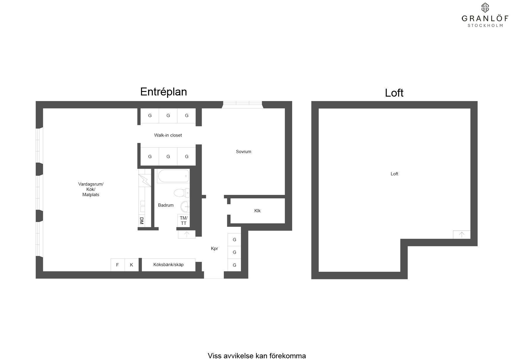 Från hallen leder en trappa upp till ett charmigt sovloft – en smart och mysig plats för sömn, gäster eller avkoppling, med utsikt över vardagsrummet och de stora fönstren.