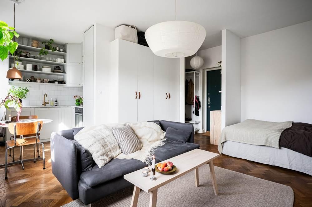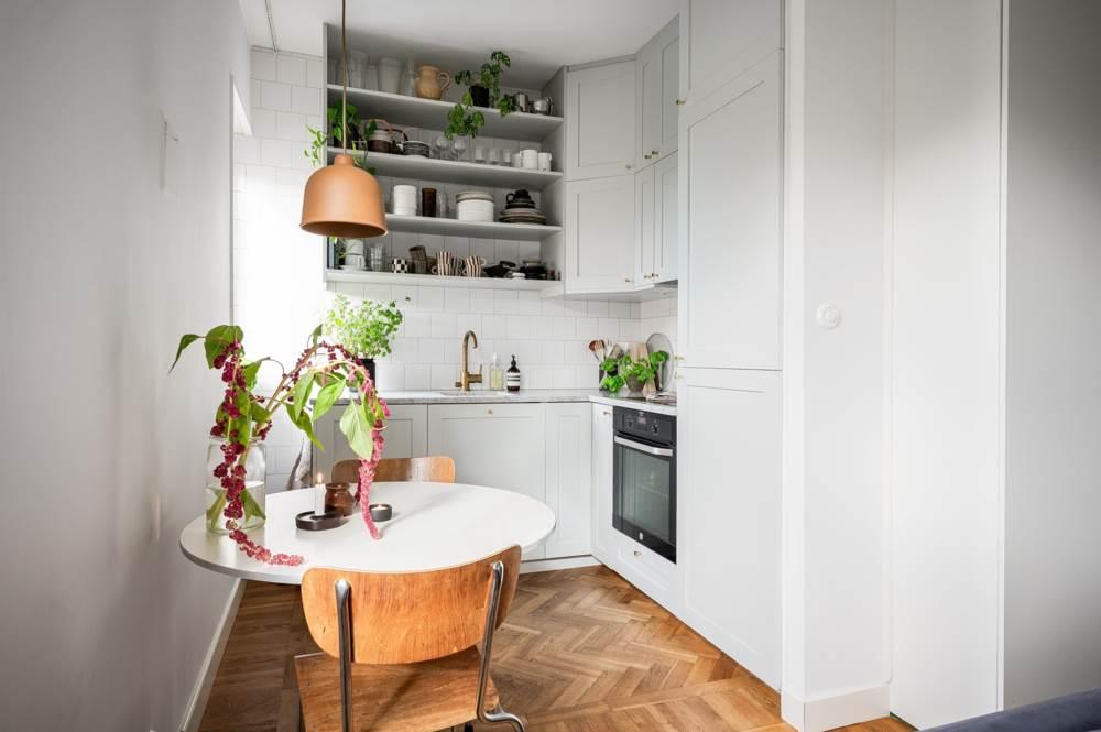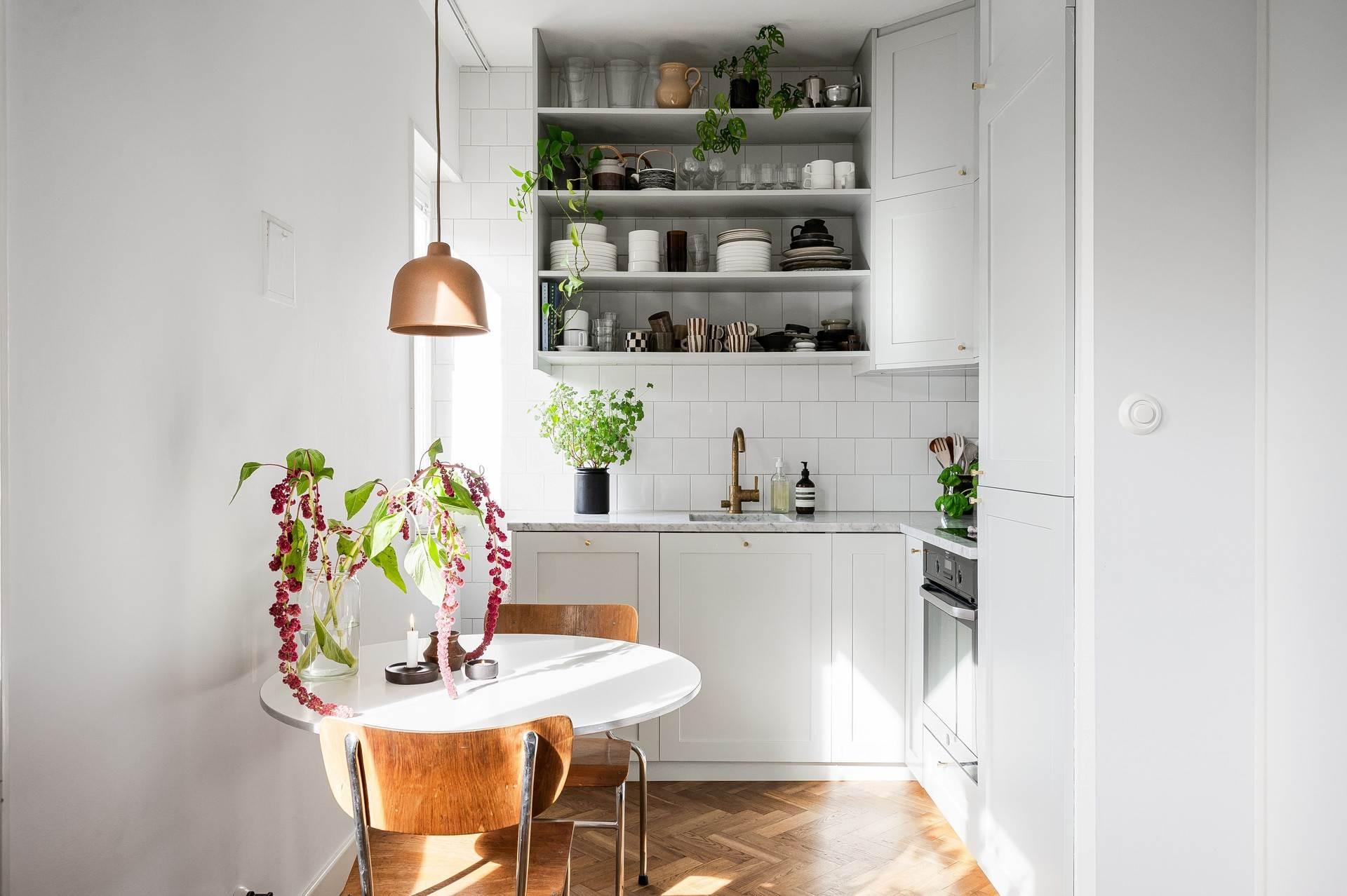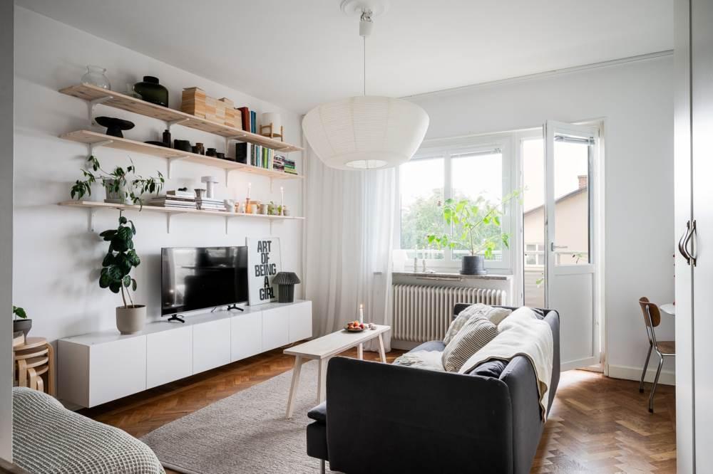 Lägenheten välkomnar med en rymlig hall där bra förvaringsmöjligheter ger en praktisk och ordnad start på hemmet. Vidare möts du av en härlig rymd tack vare den generösa takhöjden och de stora fönstren som släpper in rikligt med dagsljus. Golven pryds av en vacker fiskbensparkett som tillsammans med de ljusa väggarna skapar en stilren och tidlös atmosfär.